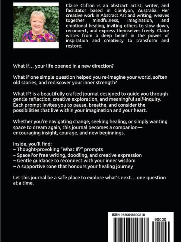 Inside you’ll find gentle but powerful What if ….? Prompts designed to spark reflection, creativity, clarity and courage. Each question is an invitation to explore the stories you tell yourself, and the stories you could choose instead.
